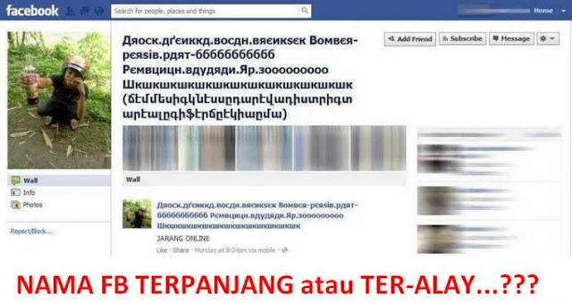 Berikut ini ada beberapa nama pengguna facebook yang akan membuat mata mu berkerut dan binggung memahaminya :